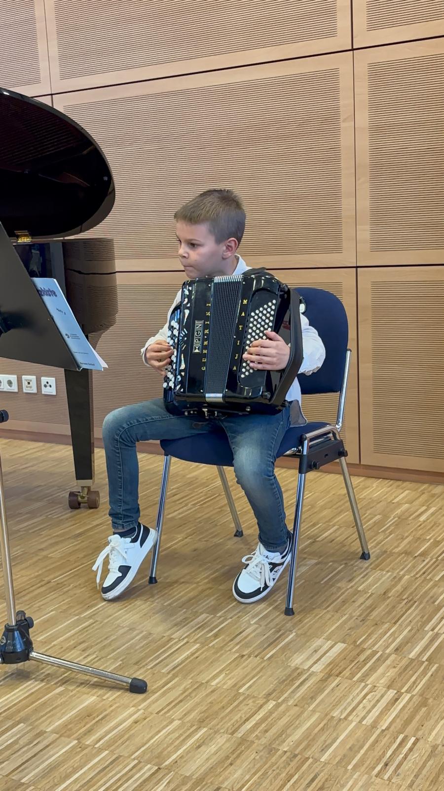 In einer herzlichen Atmosphäre zeigten die Nachwuchsmusikerinnen und -musiker ihr Talent auf den verschiedensten Instrumenten: Akkordeon, Klavier, Violine, Cello, Querflöte, Gitarre und sogar die Harfe waren vertreten. Mit viel Begeisterung, Lampenfieber und Stolz erfüllten sie den Konzertsaal mit Musik – von ersten Melodien bis hin zu kleinen Ensemblebeiträgen.